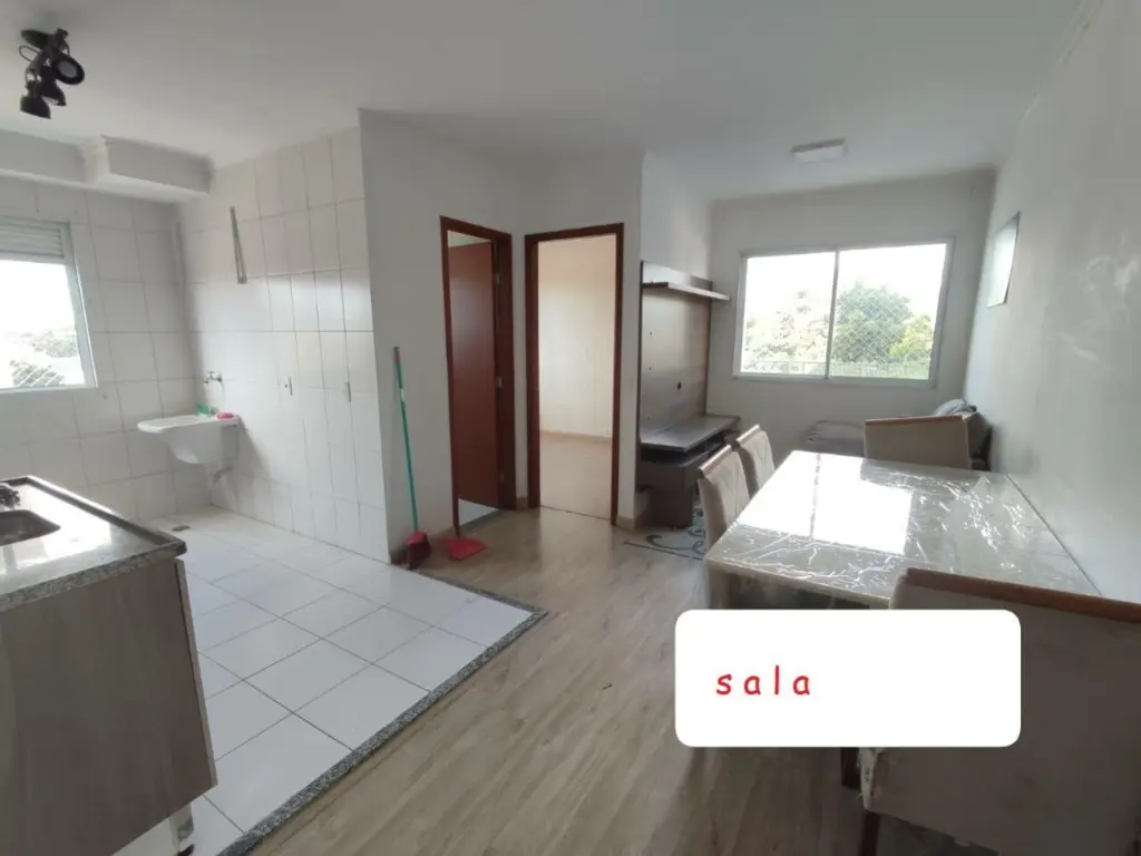 Apartamento 01 Dormitório sala cozinha banheiro e área de serviço.