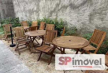 Condomínio com lavanderia Omo, salão de festas, churrasqueira, pátio, espreguiçadeiras, co-working com wi-fi, portaria 24 horas.