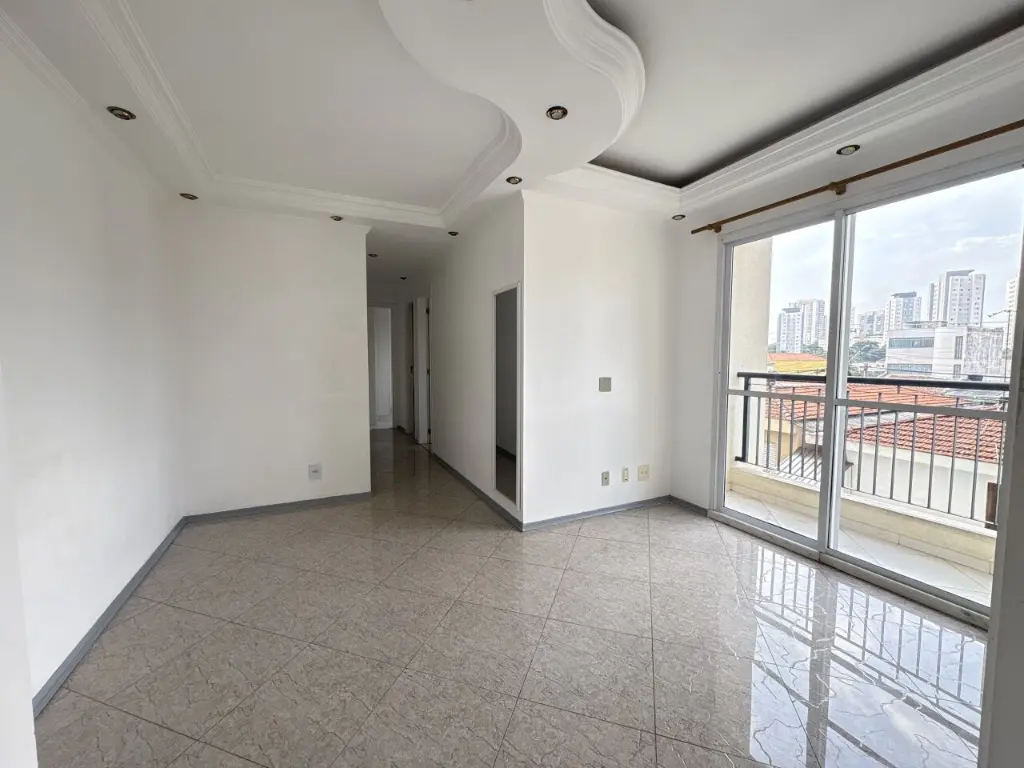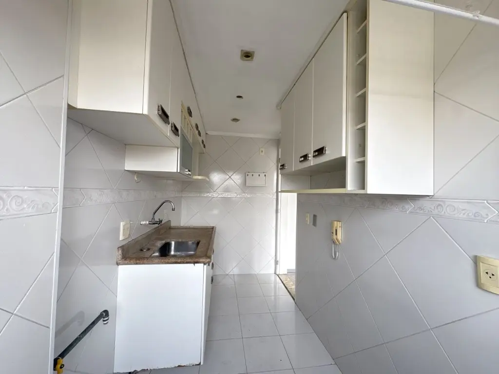 Apartamento para alugar com 2 quartos, 1 banheiro, sala de jantar e estar, com varanda.