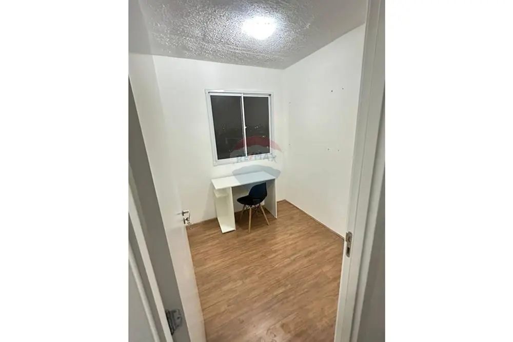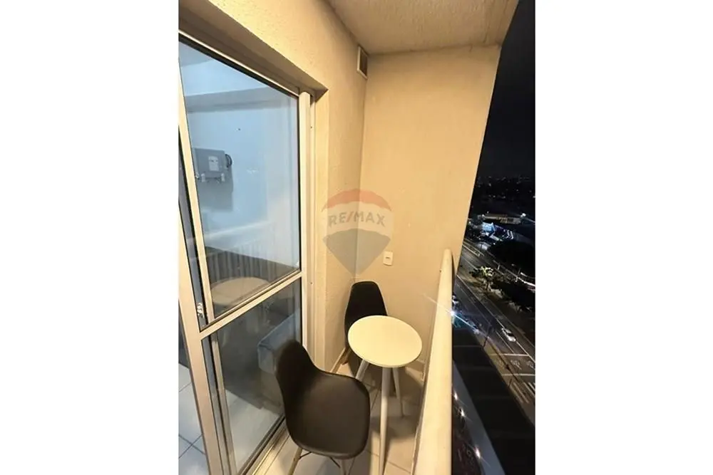 Possui varanda com mesa e cadeiras. São 2 dormitórios, sendo um com cama de casal, armário e cortina, e outro com mesa de estudo e cadeira ideal para home office.