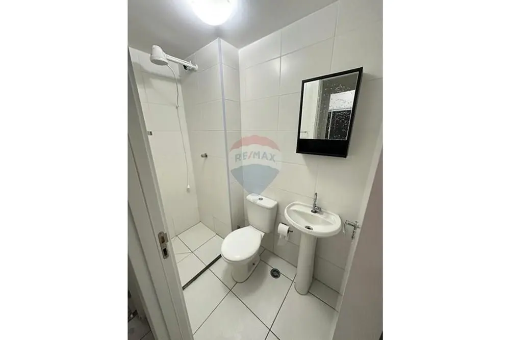 Banheiro com chuveiro elétrico e armário, sem box. Piso laminado nos quartos e cerâmica nas demais áreas.