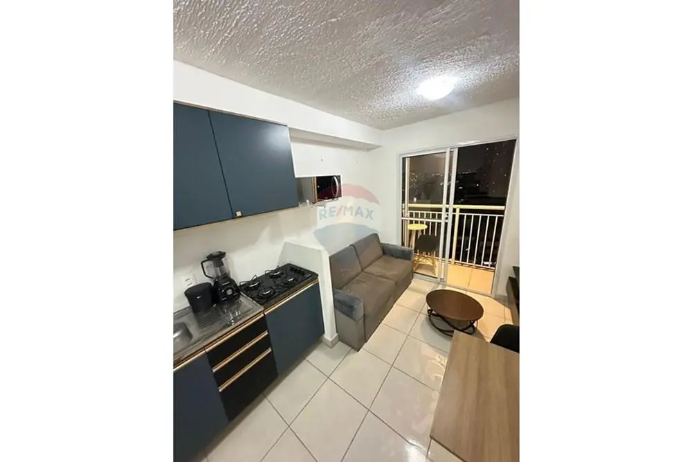 Apartamento mobiliado no Condomínio Portal Barra Funda (Vila Tiradentes), localizado na Avenida Rudge, 351, em região estratégica de São Paulo. Unidade em andar alto, bem iluminada, com incidência de sol da manhã e ambientes integrados entre sala e cozinha.