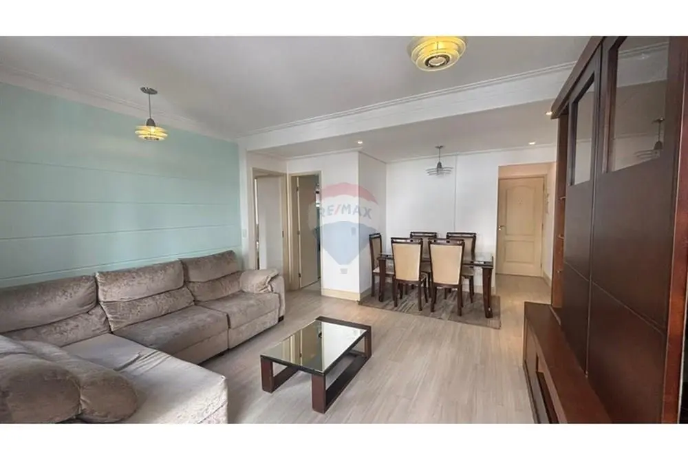 Esse apartamento tem 62 metros, 1 suíte com armário planejado, cama box, colchão e escrivaninha, sala ampliada com estante, sofá e mesa de centro, sala de jantar com mesa de vidro e 6 cadeiras, cozinha com armário planejado, geladeira, fogão, micro-ondas, e fogão, lavanderia e máquina de lavar, varanda e 2 vagas de garagem, pronto para morar.