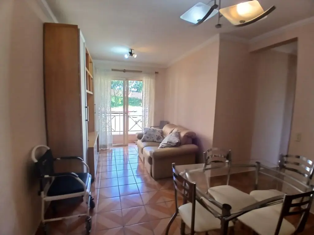 Apartamento Totalmente Mobiliado para locação/alugar, com 3 dormitórios, todos com armários, 1 banheiro, varanda e 1 vaga. Condomínio com academia, churrasqueira, salão festas, mini mercado, etc.