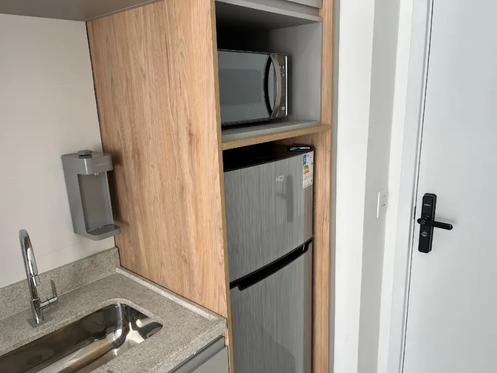 Studio para locação com 26m² no bairro das Perdizes, nunca habitado em prédio recém-entregue pela Cyrela, ideal para quem busca praticidade, conforto e um estilo de vida moderno. O apartamento está totalmente mobiliado, com excelente aproveitamento de espaço, contando com armários embutidos, geladeira, micro-ondas e uma charmosa varanda com mesa e sofá, perfeita para momentos de descanso.