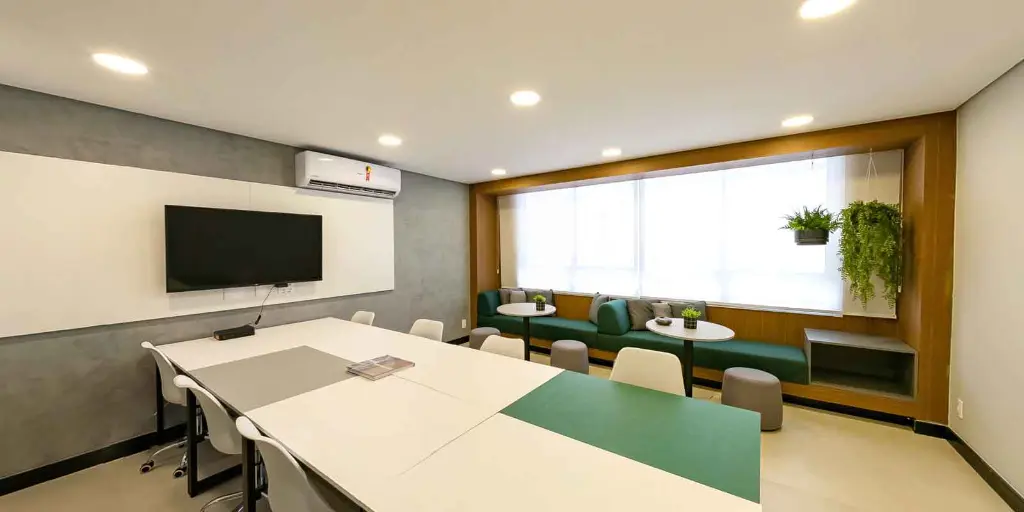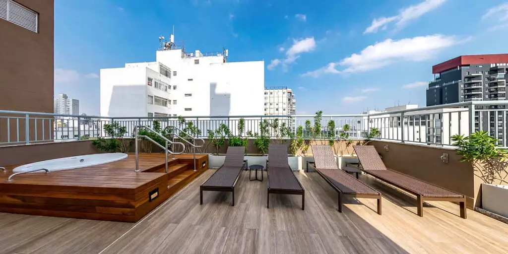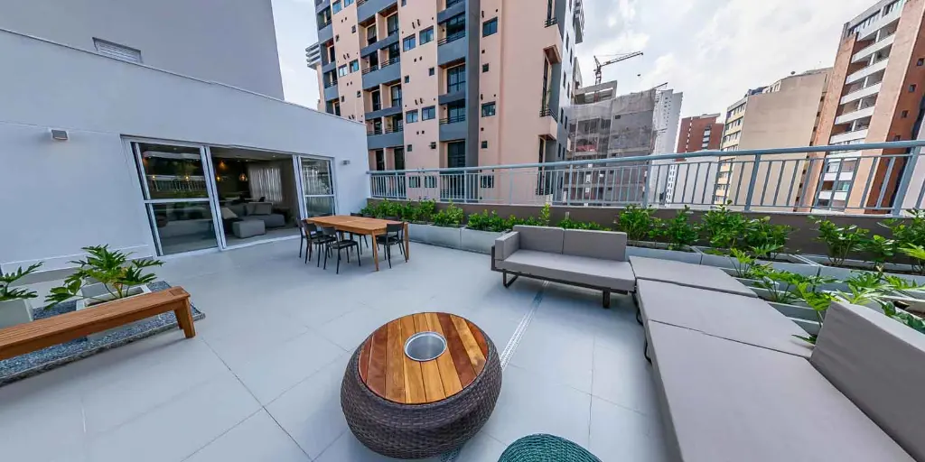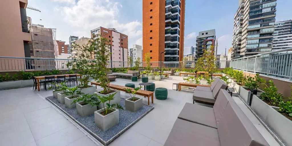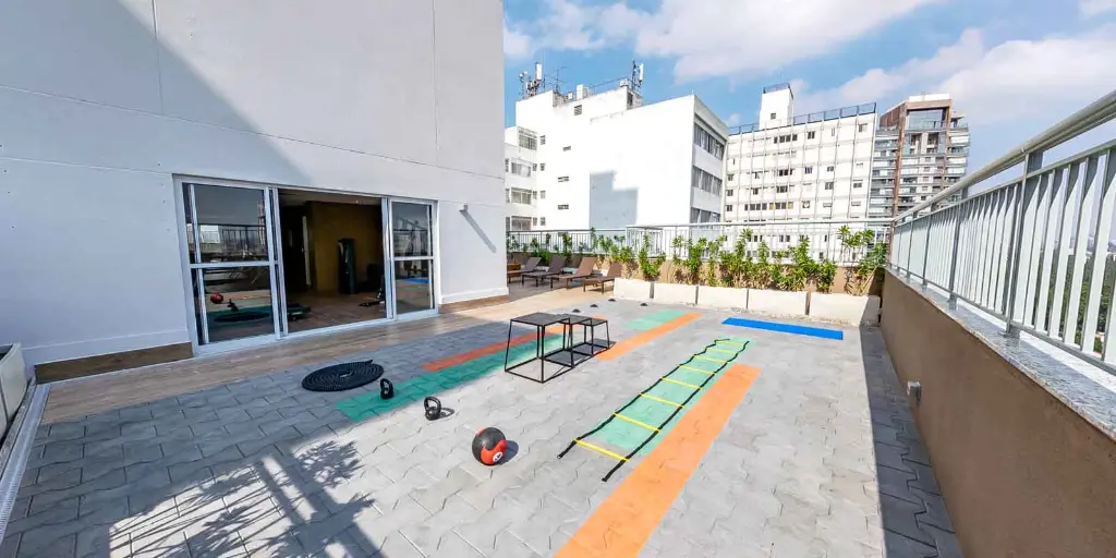 Wi-Fi nas áreas compartilhadas Coworking para trabalhar ou estudar com tranquilidade Espaço Fitness Rooftop com vista Lavanderia Lounge Gourmet Bicicletário