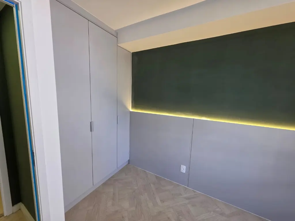 Dormitório com armários e cama de casala