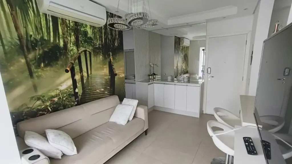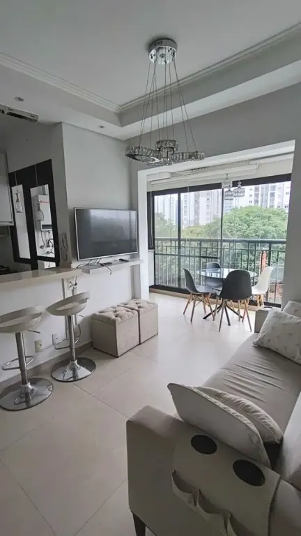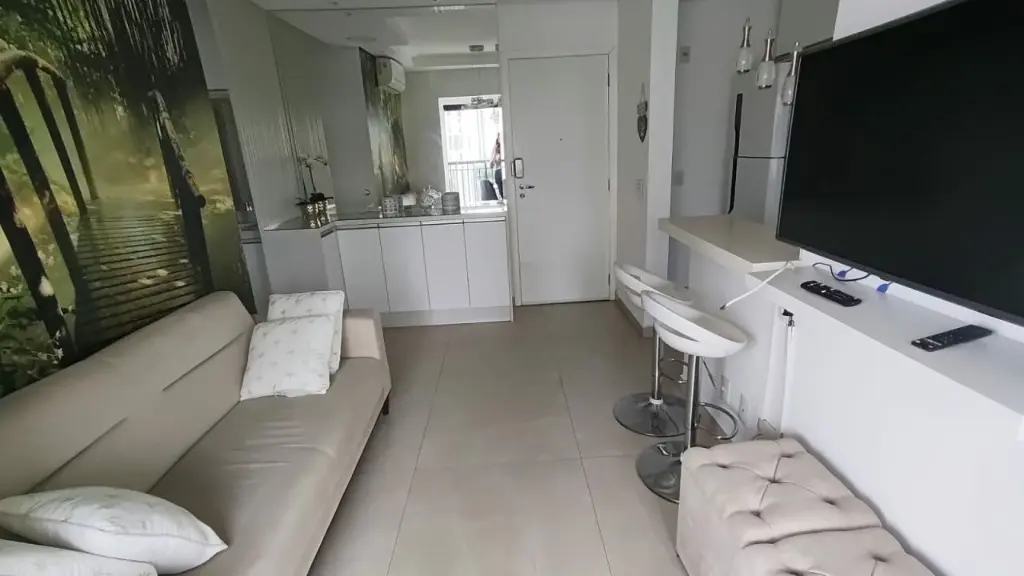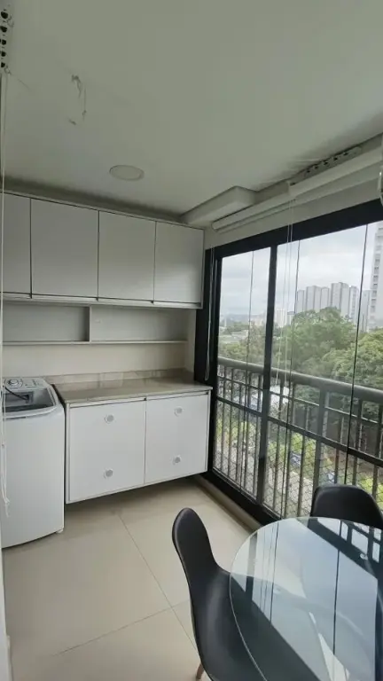 Apartamento mobiliado para alugar em Osasco, possui 1 dormitório, 1 banheiro, sala, cozinha e varanda envidraçada.