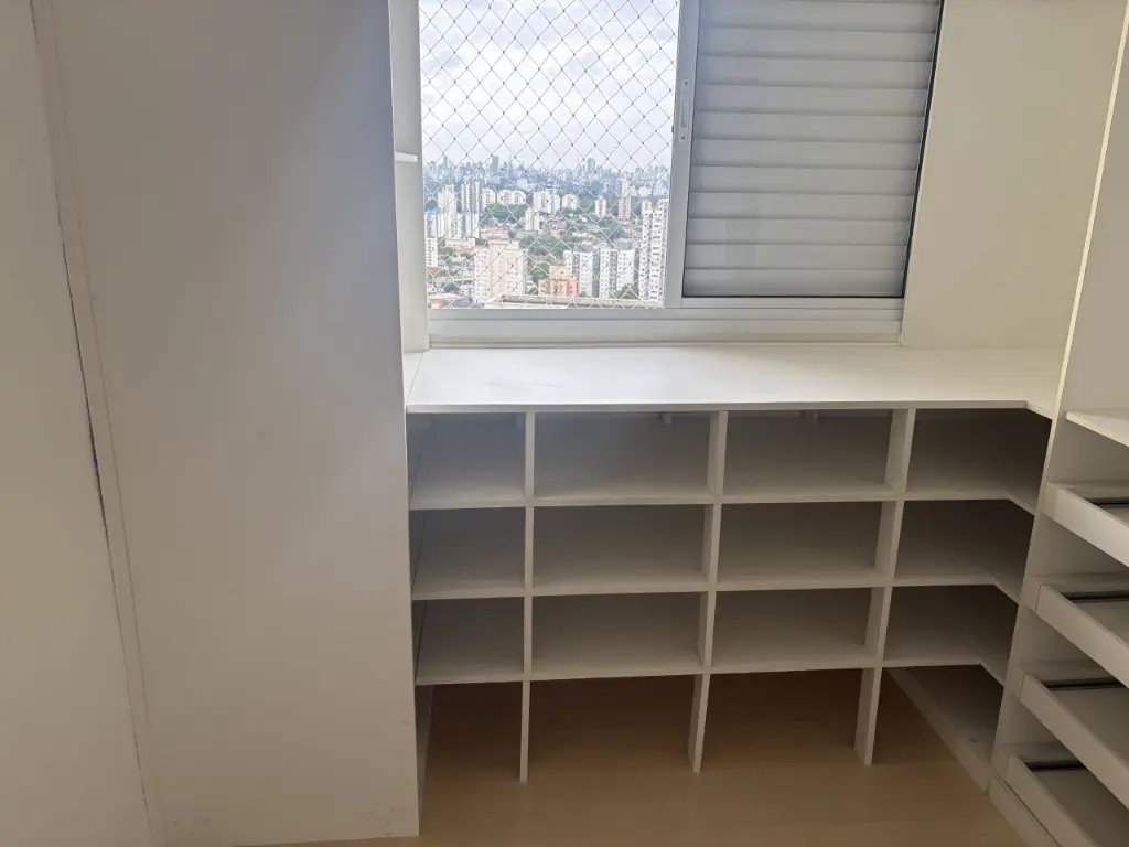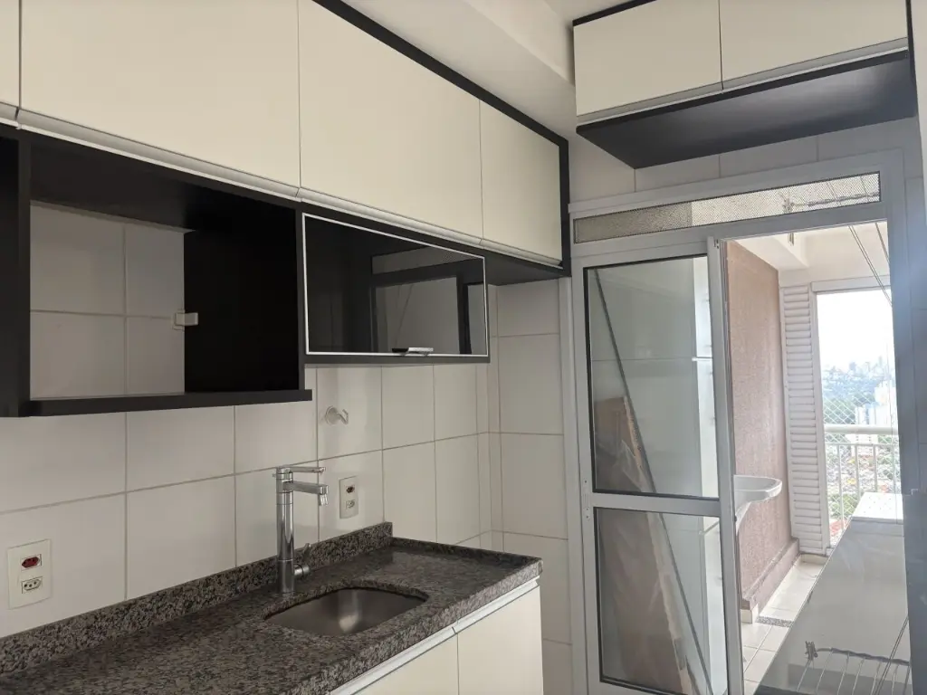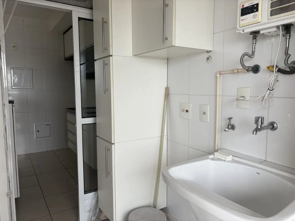 São 60 m² com sala para 2 ambientes, sacada ampla com fechamento em vidro, 2 dormitórios sendo uma suíte com armários planejados, cozinha com armários planejados, área de serviço e 1 vaga coberta.