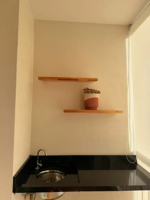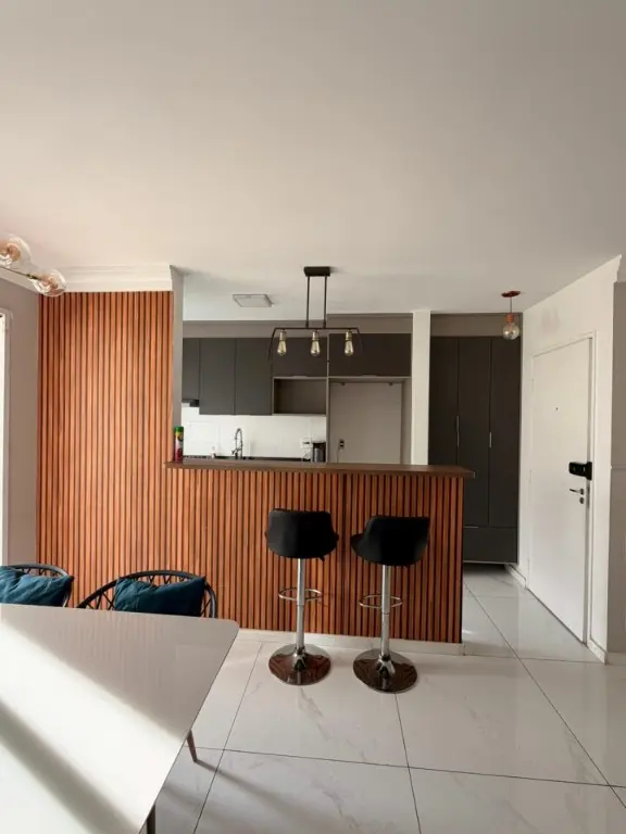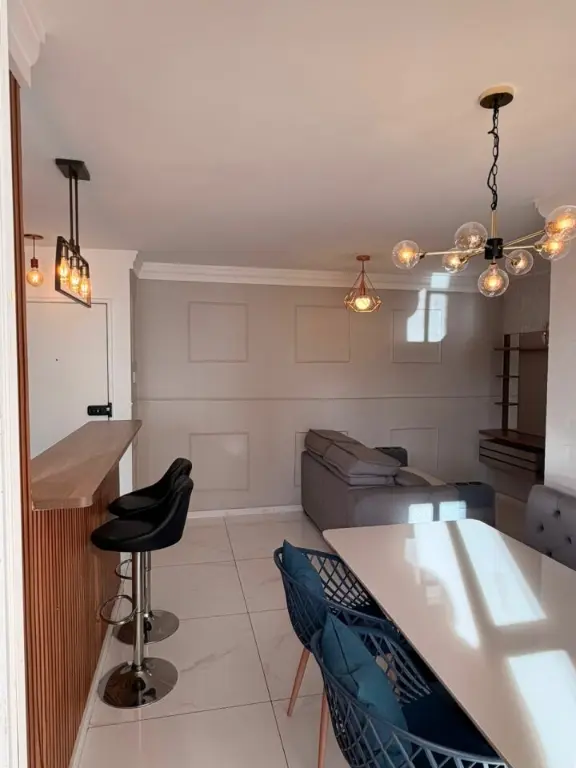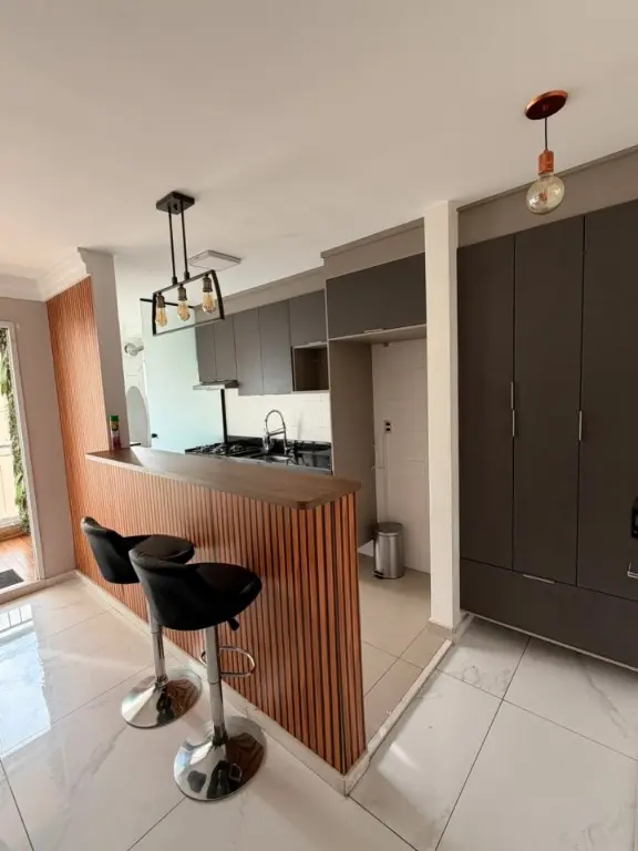 BELÍSSIMO APARTAMENTO MOBILIADO, RICO EM ARMÁRIOS PLANEJADOS, VARANDA.