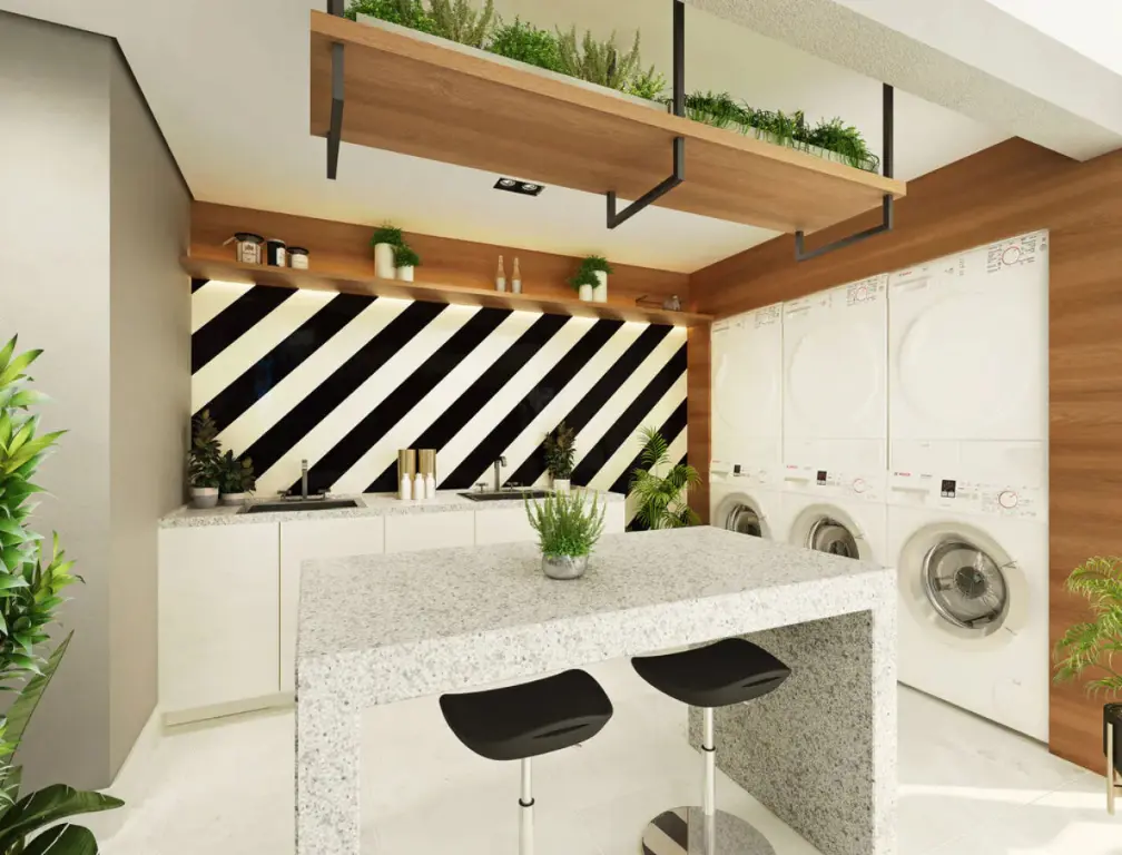 O espaço foi projetado para otimizar cada metro quadrado, oferecendo conforto e sofisticação: