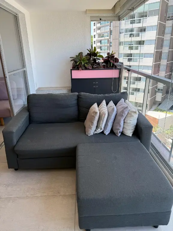 Apartamento mobiliado e decorado sala, cozinha, banheiro, varanda e vaga de garagem.