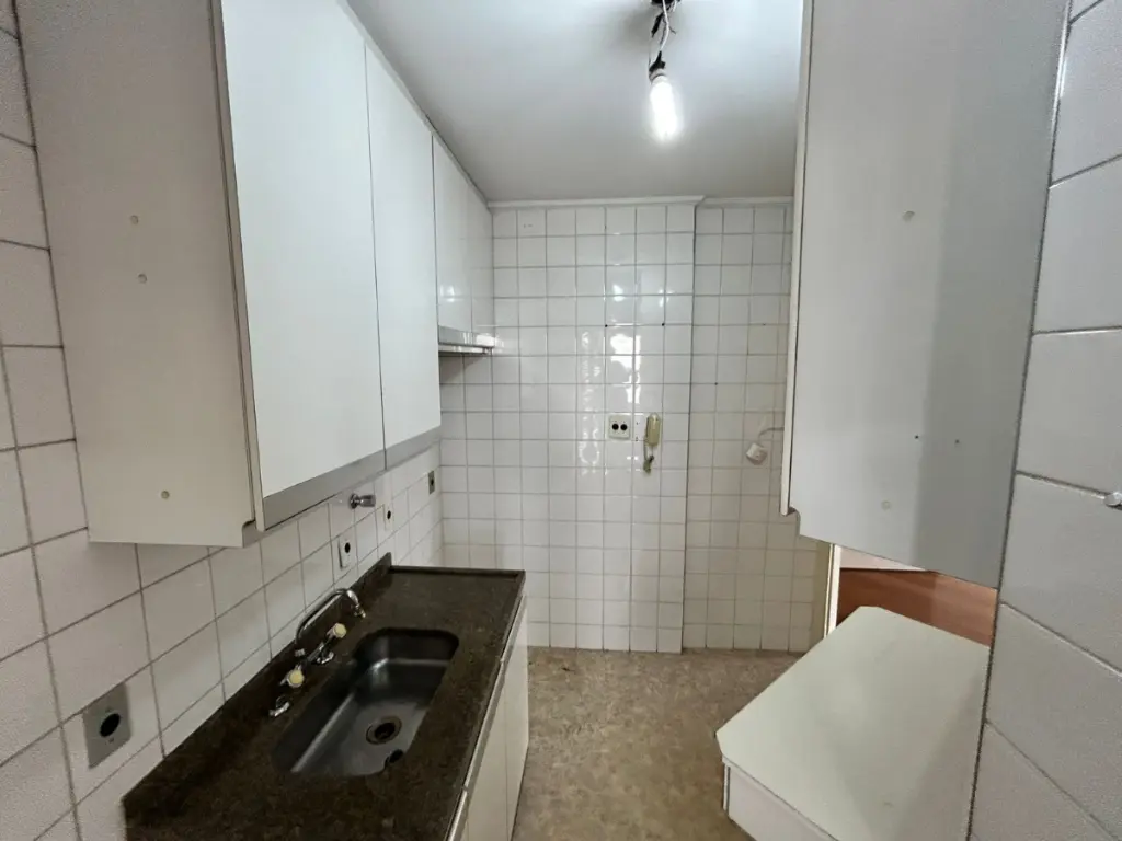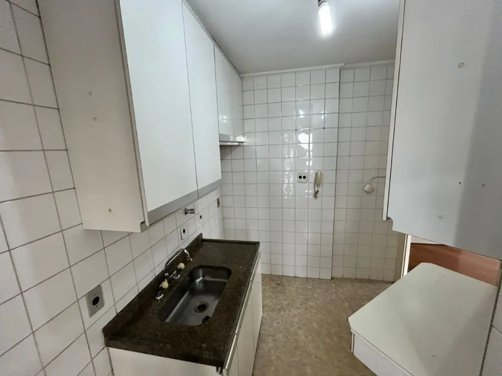 São 70M² de área útil, sendo sala principal com varanda, 2 dormitórios com armários, 01 escritório, banheiro social, cozinha, área de serviço e banheiro de serviço.