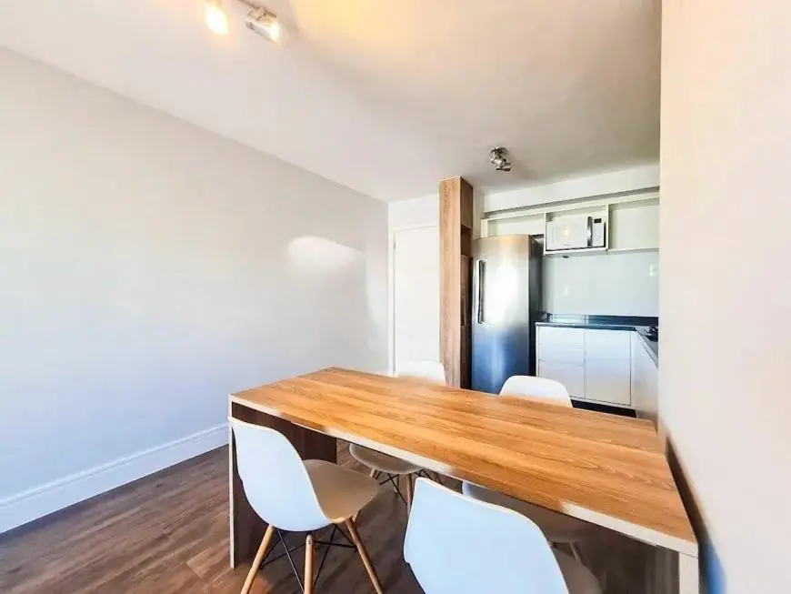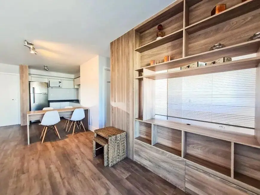 O imóvel possui 2 dormitórios, sendo 1 suíte, além de um segundo quarto versátil, ideal para escritório, quarto de apoio ou hóspedes. A cozinha integrada à sala traz mais amplitude e modernidade ao ambiente. São ainda 2 banheiros, 2 vagas de garagem, interfone e o condomínio aceita animais