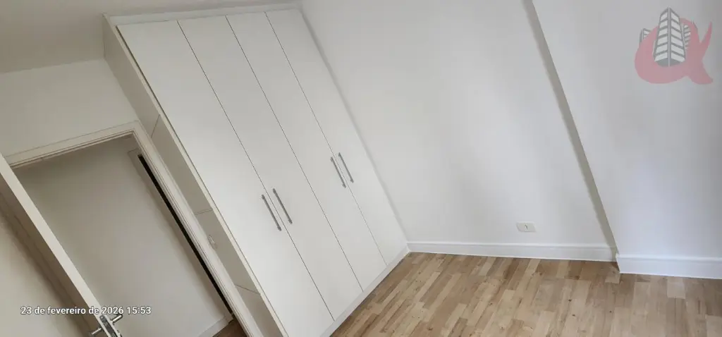 Piso laminado de madeira e pintura do teto e paredes, tudo em ordem.