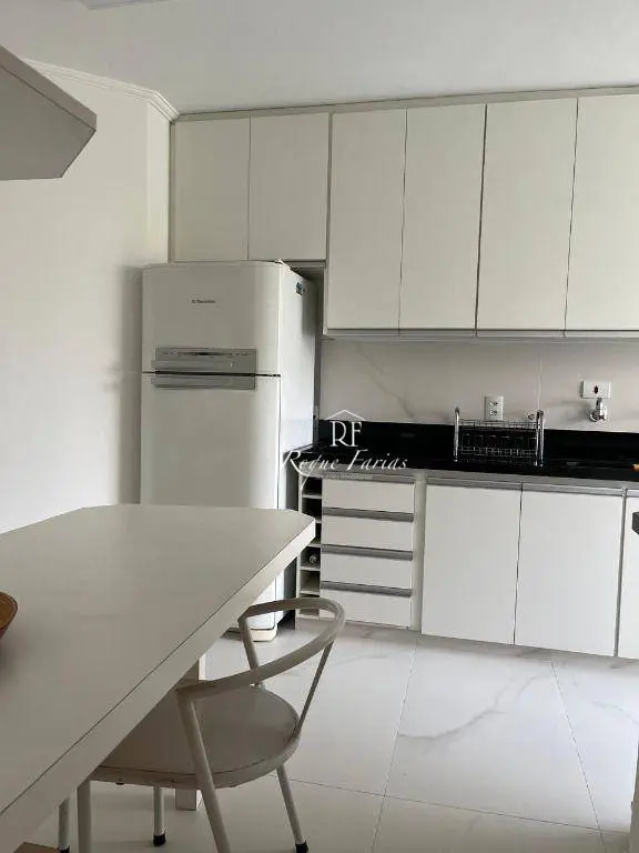 - Cozinha com armários, fogão e geladeira