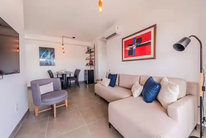 E o apartamento, todo decorado, com muito bom gosto, entrar e desfrutar.