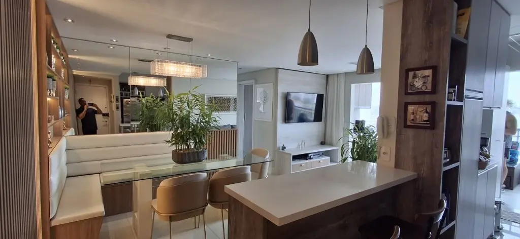 EXECELENTE APARATAMENTO TOTALMENTE MOBILIADO COM GELADEIRA, FOGÃO, MICRO-ONDAS, COIFA, LAVA SECA, FILTRO DE AGUA GELADA, MESA DE JANTAR, CAMA QUEEN BOX CASAL, VENTILADOR DE TETO NOS DORMITÓRIOS, VARANDA GOURMET COM FECHAMENTO EM VIDRO, TELA DE PROTEÇÃO E MOSQUITEIRO EM TODAS AS JANELAS, AQUECIMENTO À GÁS PARA AS DUCHAS.