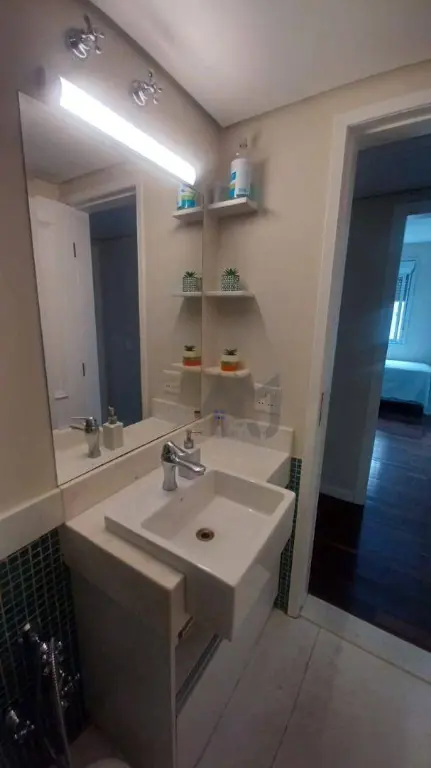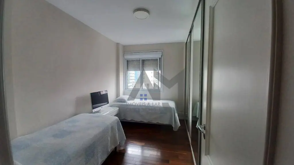 Piso de madeira em todo o apartamento, conferindo aconchego e requinte.