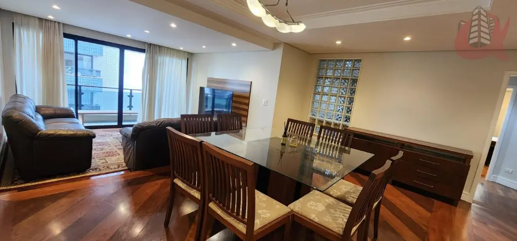 Apartamento mobiliado completo de 167m². com planejados de primeira linha, conta com 3 dormitórios, sendo 1 suíte, sala ampla para 2 ambientes, lavabo, 3 sacadas, despensa e 2 vagas de garagem.