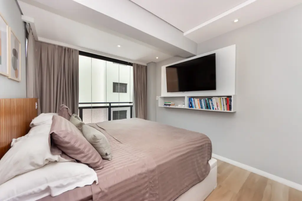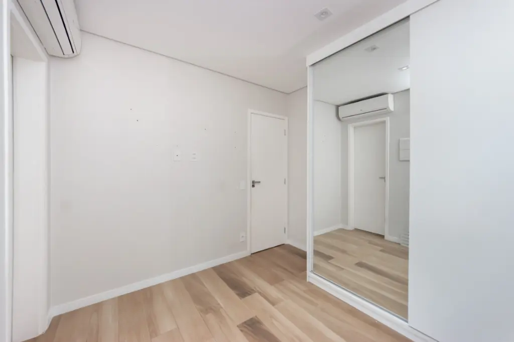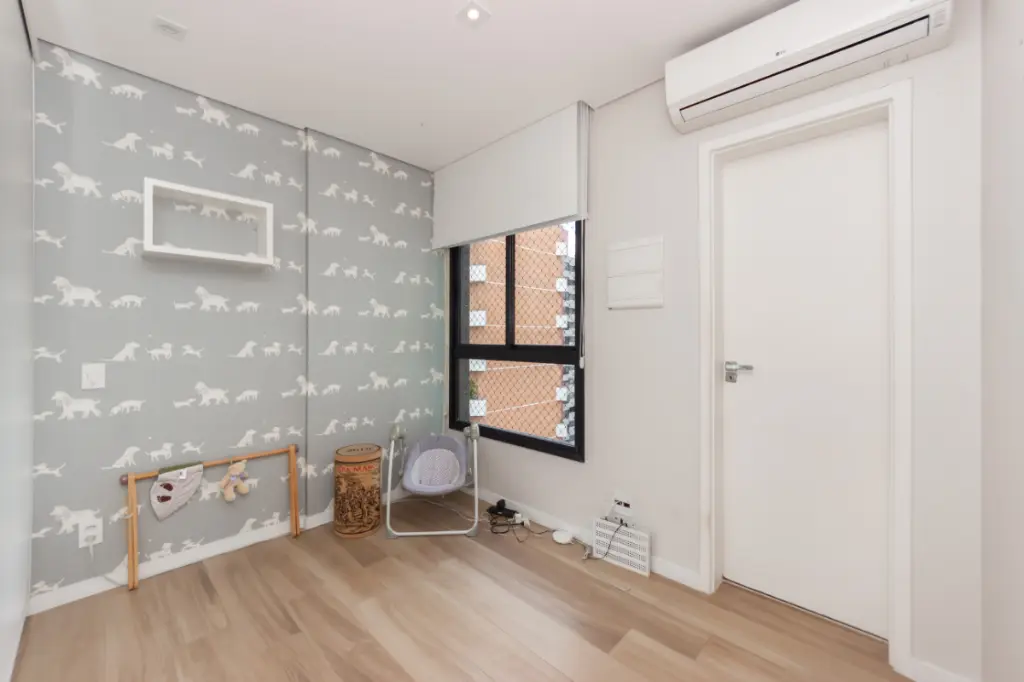 São 2 suítes, além de 3 banheiros, oferecendo conforto e privacidade. O apartamento será entregue mobiliado, com móveis planejados, adega climatizada e acabamentos de qualidade, incluindo piso laminado.