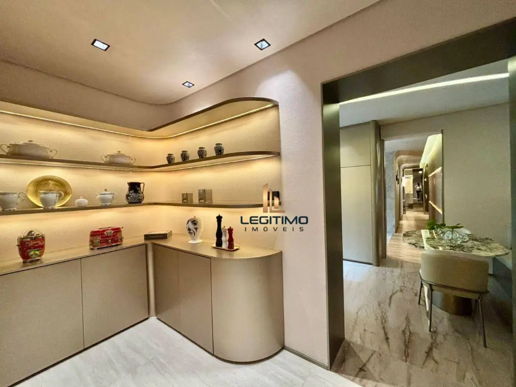 Apartamento amplo com 3 salas, 4 suítes plenas, persiana automatizada em todas as suítes, banheiro master com infraestrutura para banheira, infraestrutura completa para ar-condicionado nos dormitórios e terraços sociais, e terraço gourmet.