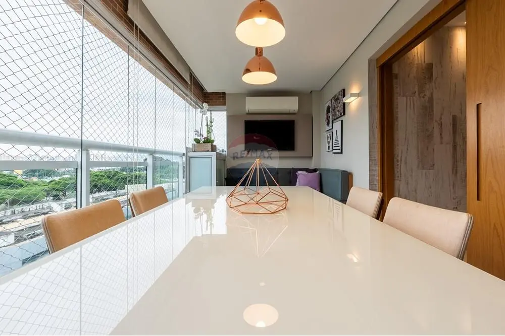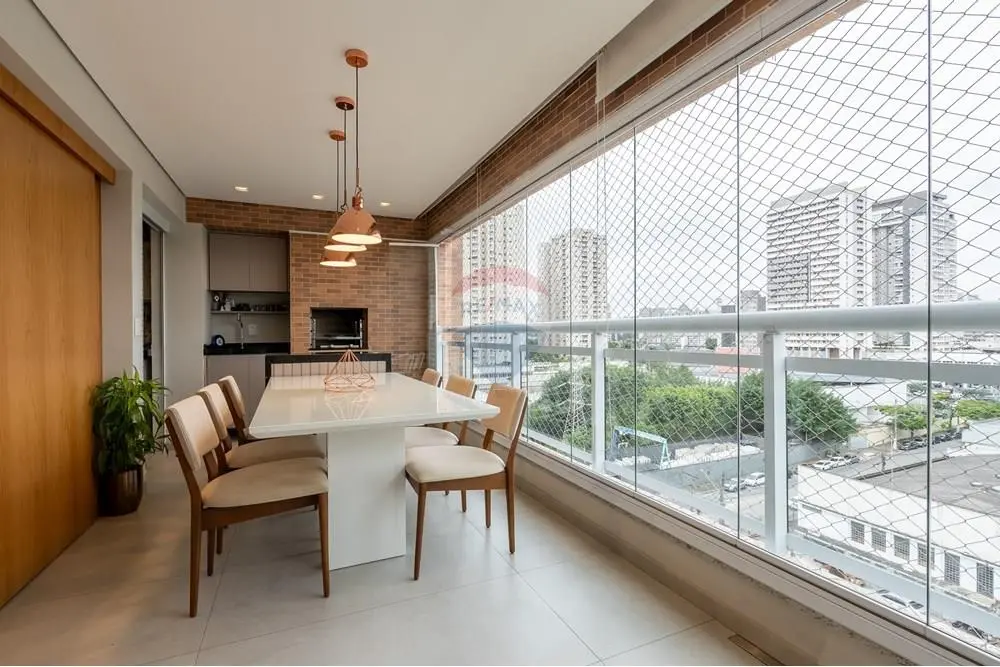 O imóvel conta ainda com lavabo, cozinha americana com marcenaria completa e lavanderia. A ampla sala para dois ambientes oferece conforto e sofisticação, enquanto a varanda gourmet proporciona o espaço ideal para momentos de lazer.
