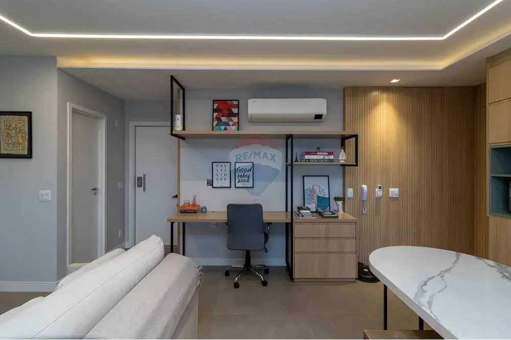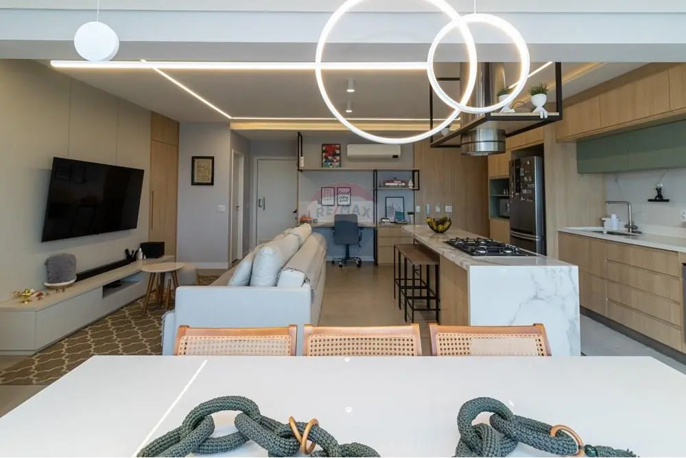 Aqui, cada detalhe foi pensado para oferecer bem-estar e elegância. São 2 suítes, sendo uma máster com closet, que garante conforto e aconchego. Home office impecável, perfeito para quem trabalha de casa. Ambientes integrados: sala, cozinha e sacada se conectam num layout moderno e fluido, com ilha gourmet equipada com cooktop e depurador de ar. Ar-condicionado potente (24.000 BTUs) para manter o clima sempre agradável, em qualquer estação. Sacada com churrasqueira proporciona bons momentos com a família ou amigos. Lavanderia isolada da cozinha, garantindo organização no dia a dia. Móveis planejados de alto padrão em todos os ambientes modernos, funcionais e impecáveis. 2 vagas cobertas e livres + depósito privativo, porque praticidade também mora aqui. Ahh um detalhe importante é que, com uma reforma, há possibilidade de fazer o terceiro dormitório.