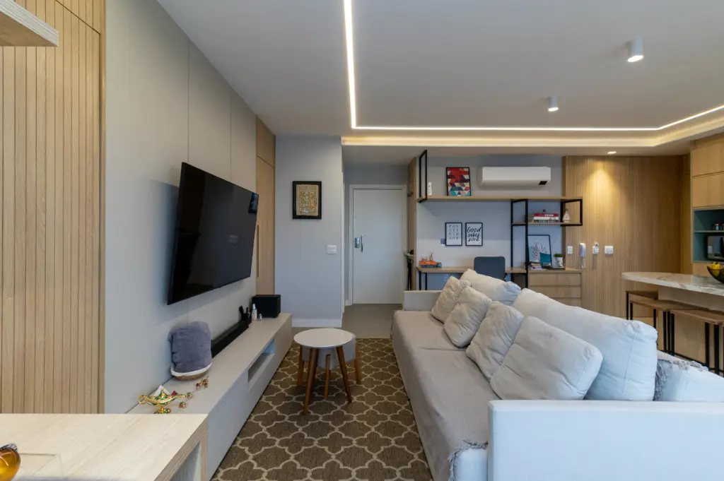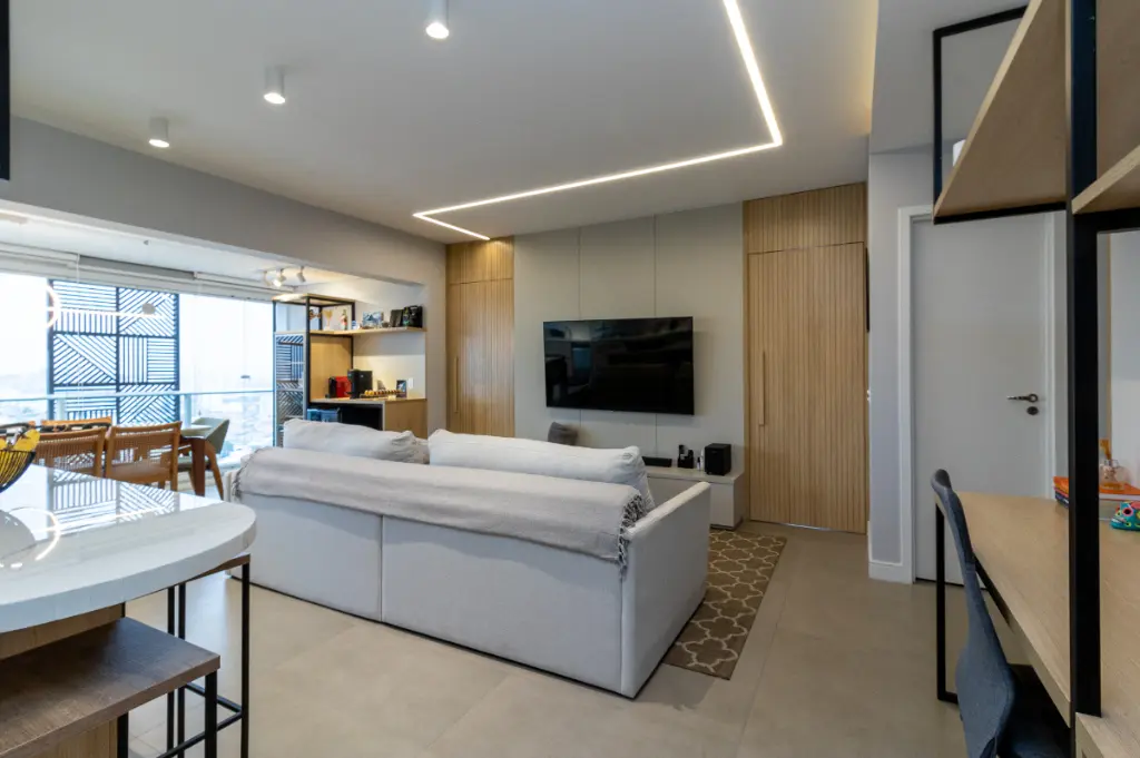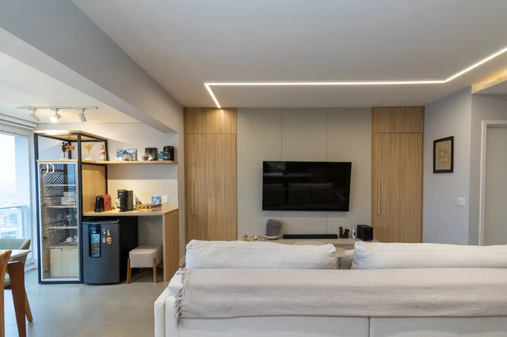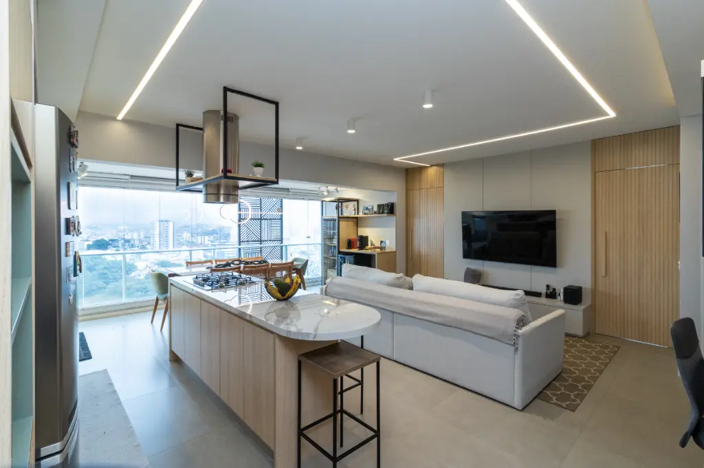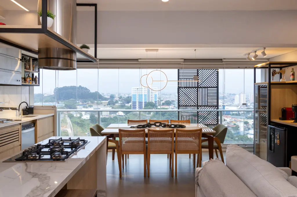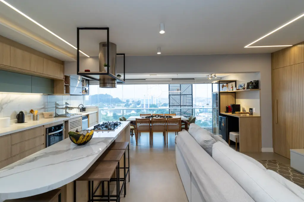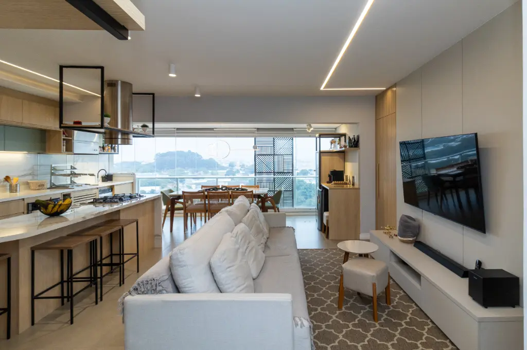 Este apartamento de 96m², localizado no 12º andar do Condomínio Design Bela Vista, é um verdadeiro refúgio urbano com vista livre e privilegiada inclusive para assistir aos shows da prefeitura direto da sua sacada, como num camarote particular.