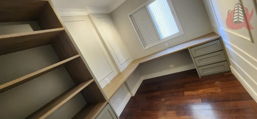 Imóvel localizado na Alameda Itapecuru 244, em Alphaville. Composto por 3 quartos, sendo 1 suíte e 1 banheiro social. O terceiro quarto foi convertido em escritório. Fino acabamento. Andar intermediario. Silencio. Persianas ja instaladas.