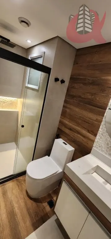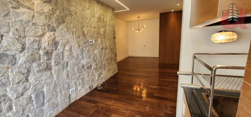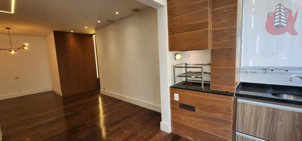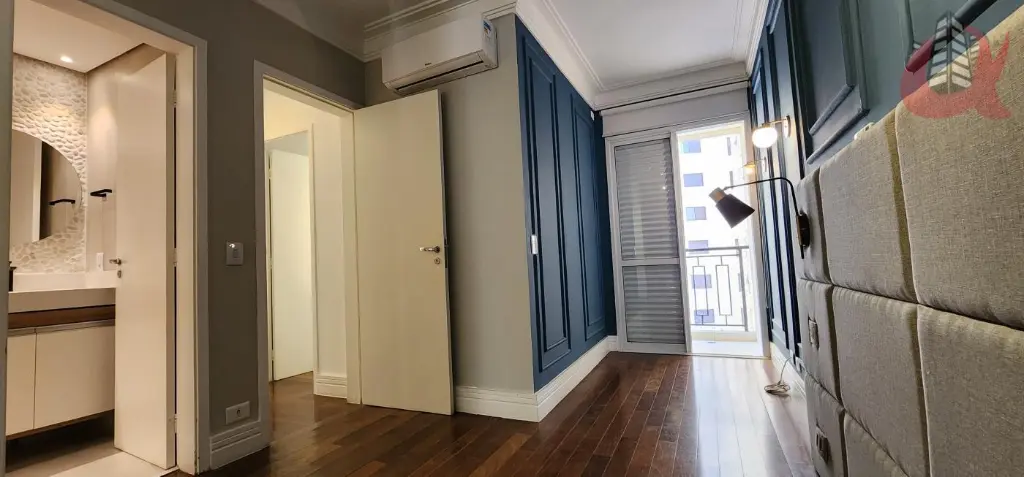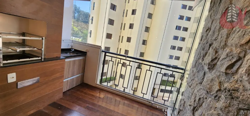 Todo em piso de madeira sucupira, varanda estendida, churrasqueira envidracada, parede em pedras naturais, quarto com ar condicionado e fechadura eletrônica. Banheiros com porcelanato inspirados em um conceito de Spa, com chuveiro a gás. Apartamento com todos armários planejados.