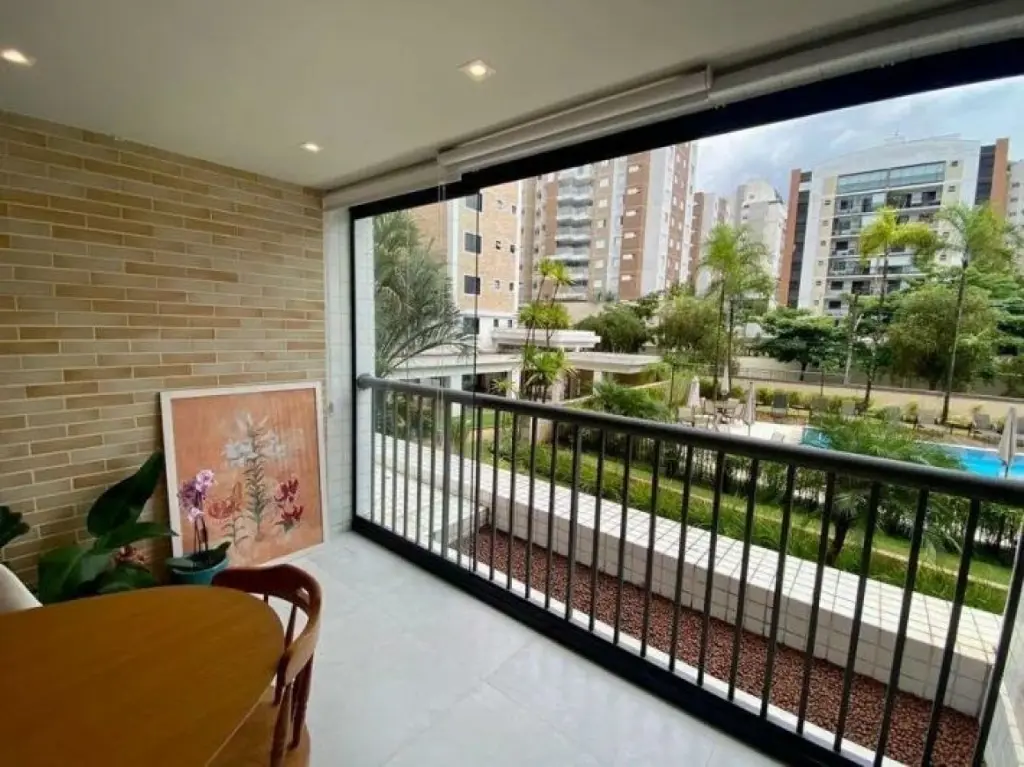 Apartamento possui 86m², distribuídos em 03 dormitórios sendo 01 suíte ( todos com armários embutidos ), wc social, sala 02 ambientes com sistema de iluminação e piso em porcelanato, integrada à uma varanda espaçosa e fechada em vidro; cozinha planejada e toda moderna, área de serviços com wc ; 02 vagas cobertas na garagem . Apartamento está muito confortável e com excelente otimização de espaços!