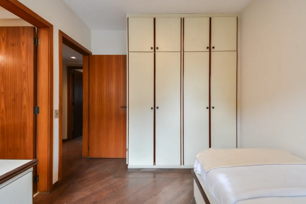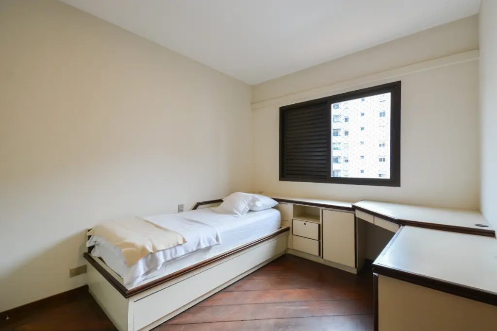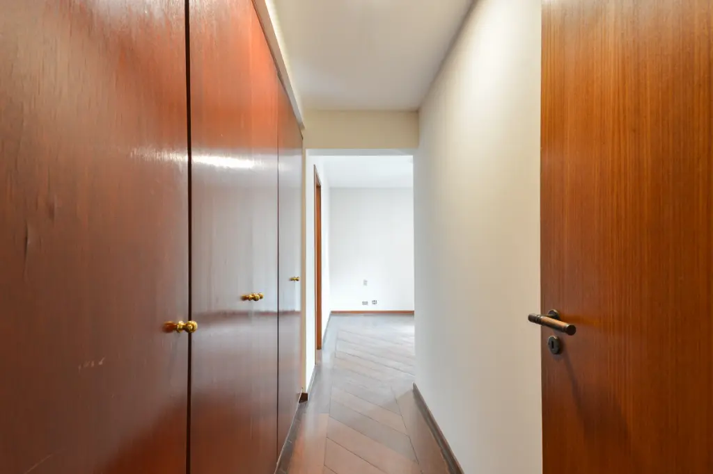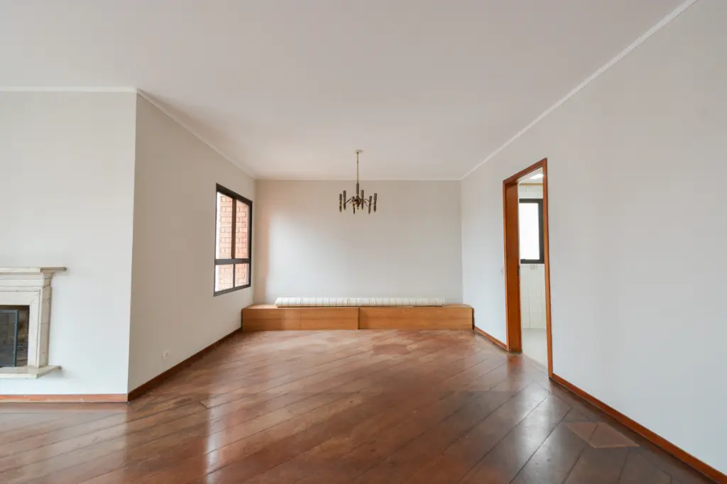 O apartamento conta com uma planta muito bem distribuída, com 4 dormitórios espaçosos, ideais para acomodar toda a família com conforto. A área social é um dos grandes destaques do imóvel: o living amplo, integrado à sala de jantar, possui piso de madeira e é banhado pelo sol da manhã, graças à charmosa varanda que proporciona iluminação natural e ventilação cruzada durante todo o dia. Os ambientes são generosos e favorecem projetos personalizados de decoração e modernização.