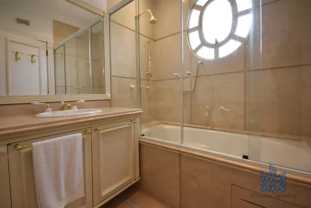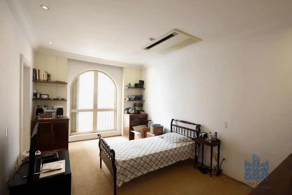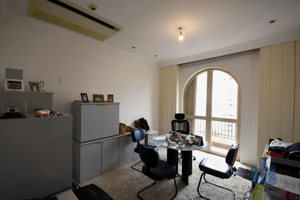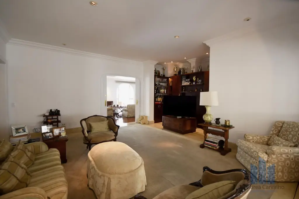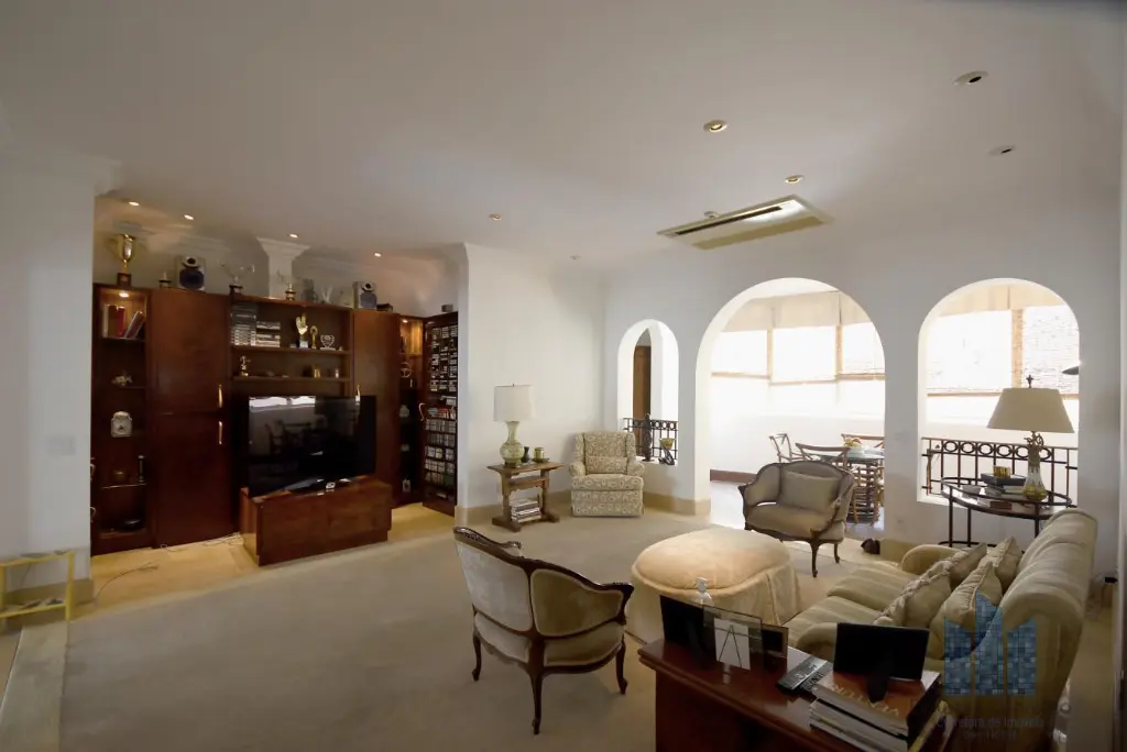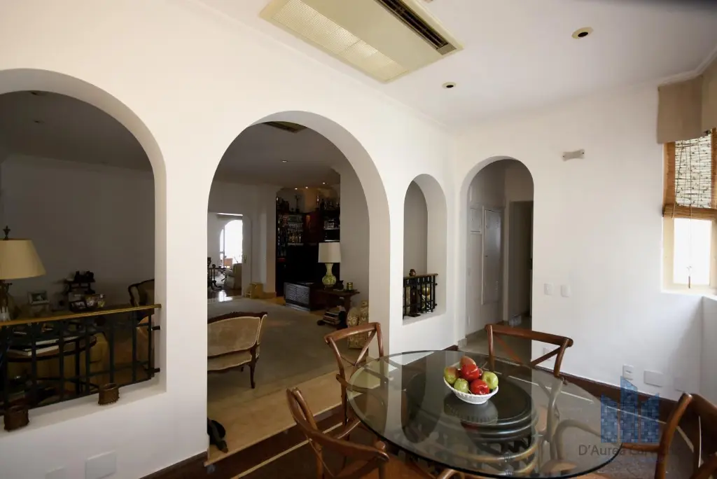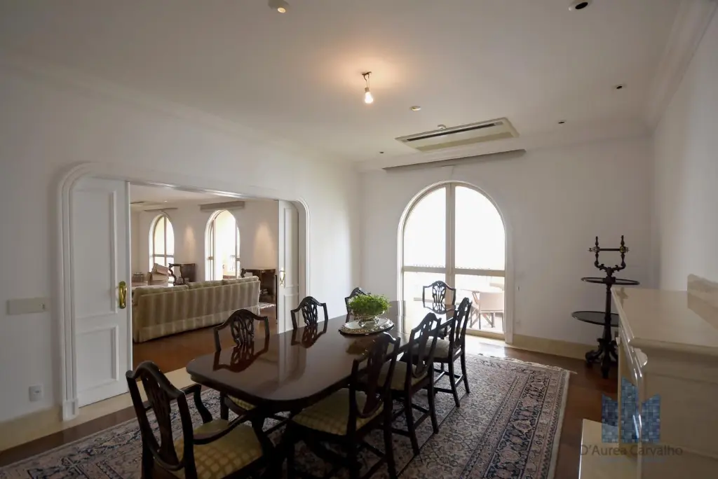 Apartamento localizado no quarto andar com boa ventilação e luminosidade. Possui 7 dormitórios, sendo 4 suítes, living amplo para três ambientes, varanda, lavabo, banheiro social, cozinha ampla com dois ambientes e área de serviço com dependências de empregada e despensa. Vaga de garagem para 8 veículos.
