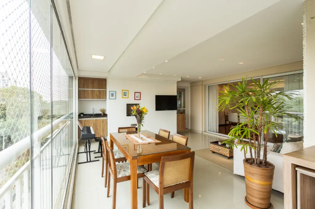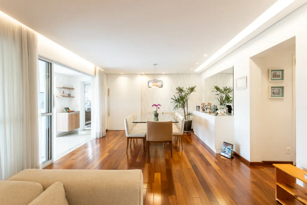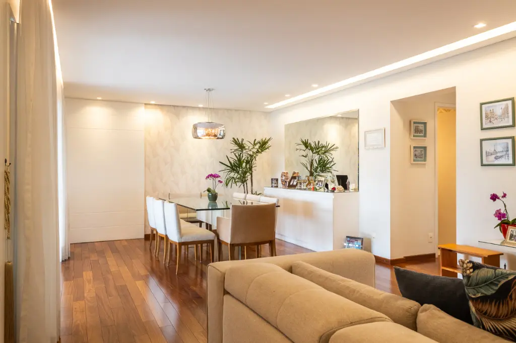 Com um espaçoso ambiente interno de 142 metros quadrados, o apartamento possui amplos cômodos, incluindo 3 dormitórios bem distribuídos, 4 banheiros e 3 toilettes, ideal para famílias que buscam espaço e privacidade. Desfrute de ambientes especialmente integrados, com uma ampla sala de jantar e uma cozinha equipada com armários embutidos.