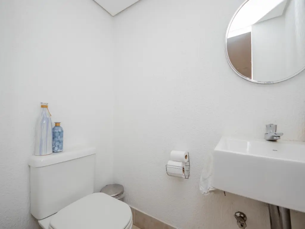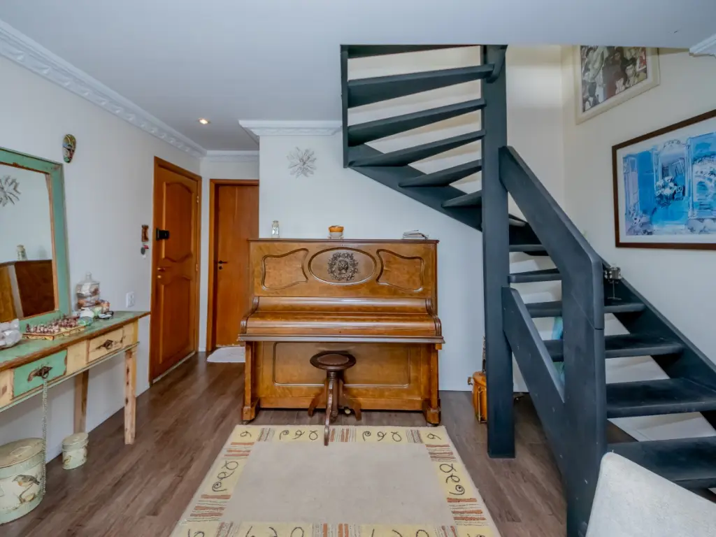 O piso inferior tem tudo o que você precisa: salas de jantar e estar com varanda, 3 dormitórios sendo 1 suíte com varanda, cozinha, despensa, rouparia e 4 banheiros sendo 1 lavabo e 1 de serviço. O quarto da funcionária se tornou um home office. Todos os ambientes são repletos de armários e se a sua necessidade for aumentar a sala e ter 2 suítes, isso é possível.