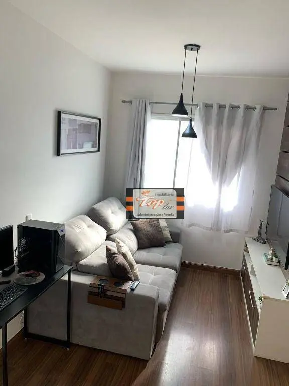 2 dormitórios com guarda-roupas planejado, Cozinha toda planejada, Banheiro com 2 armários planejados e box, Sala de estar com rack planejado amplo espaço para sala de jantar. Piso laminado na sala e nos quartos e piso frio na cozinha e banheiro.