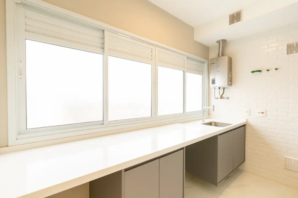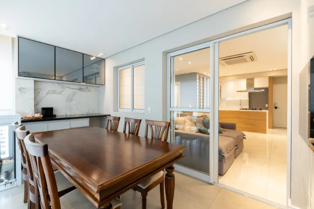 Varanda gourmet com churrasqueira e bar