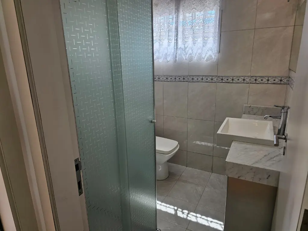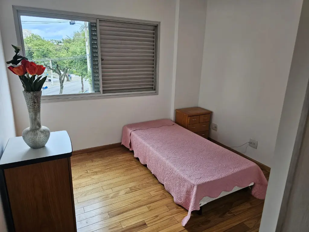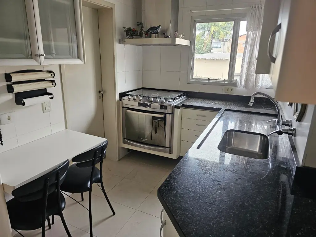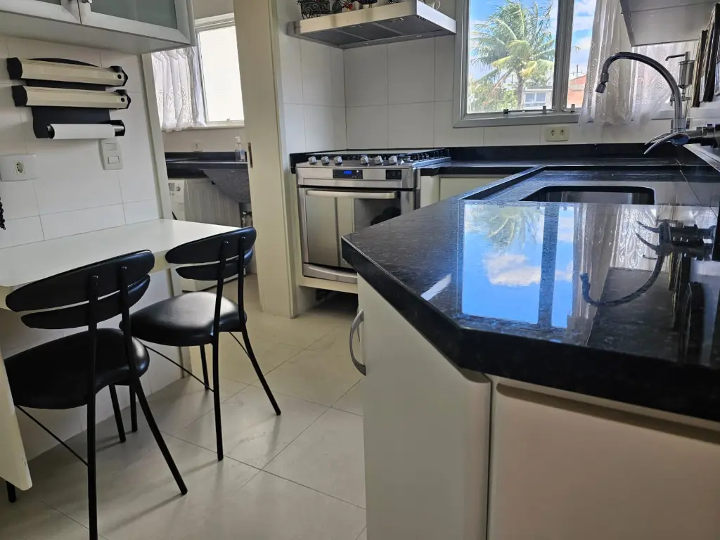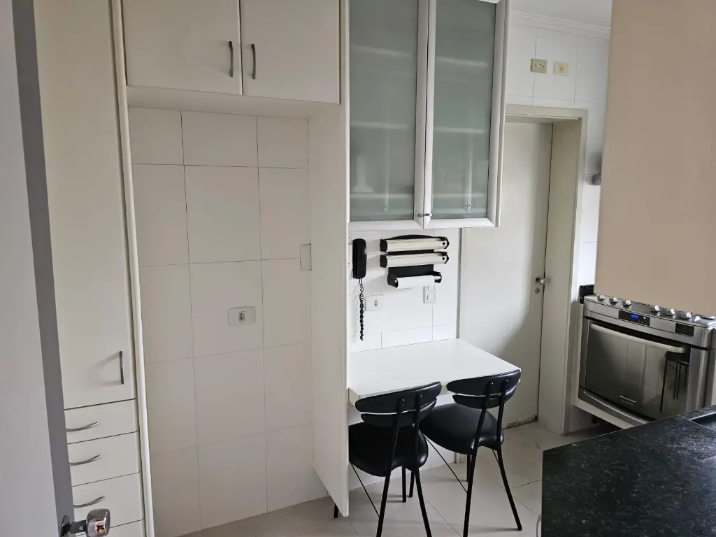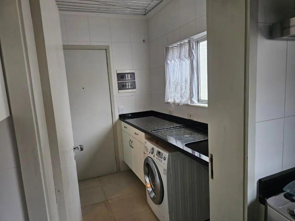 Apartamento em andar baixo, com 123m2 de área privativa, sala 2 ambientes com varanda que recebe o sol da manhã, lavabo, 3 dormitórios, sendo 1 suíte, banheiro social, cozinha com armários planejados e janelões permitindo muita luz natural, área de serviço com banheiro. Piso de madeira em todos os ambientes.