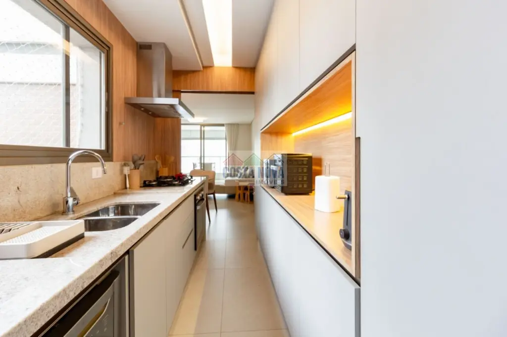 Apartamento com lindo projeto de interiores, marcenaria sob medida e acabamentos escolhidos a dedo. O valor do anúncio inclui mobiliário, iluminação, aparelhos de ar condicionado e eletrodomésticos.