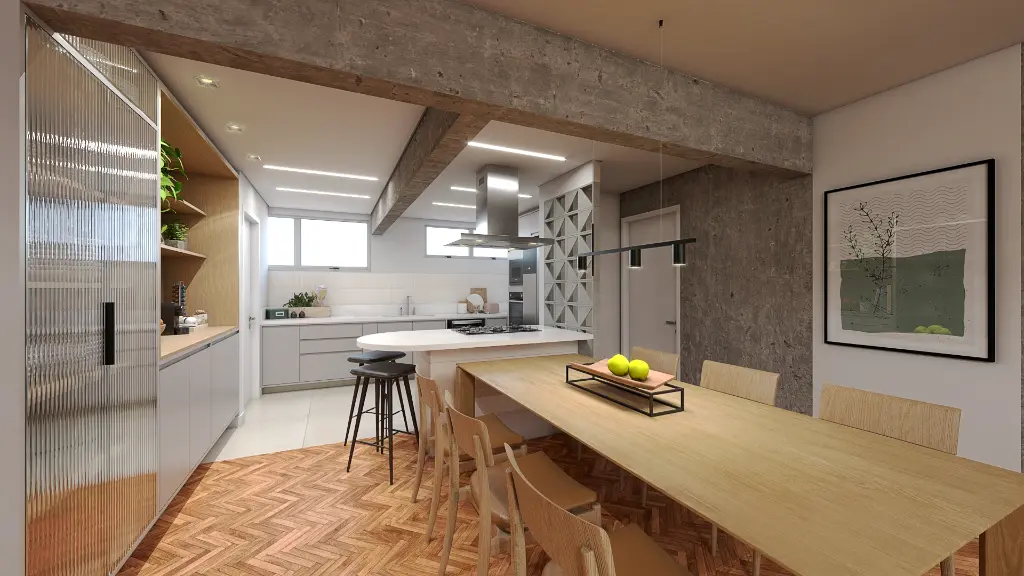 Ao iniciar a reforma, tivemos uma surpresa encantadora: as paredes da sala em tijolo maciço. Para completar, vigas e pilares ficaram estrategicamente posicionados para permanecer aparentes, trazendo um toque brutaliza ao projeto assinado pela Arq. Tamires Souza, em parceria