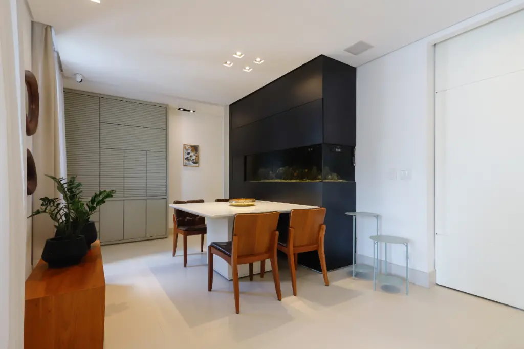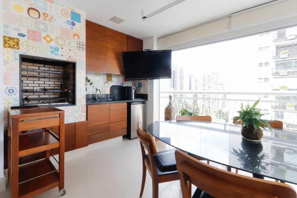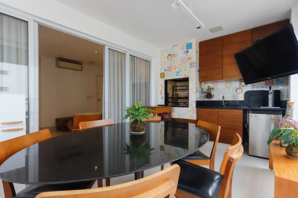 A cozinha oferece excelente circulação, com layout funcional que facilita o dia a dia, além de contar com entrada de serviço independente, lavanderia e dependência completa para funcionário.