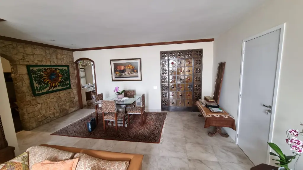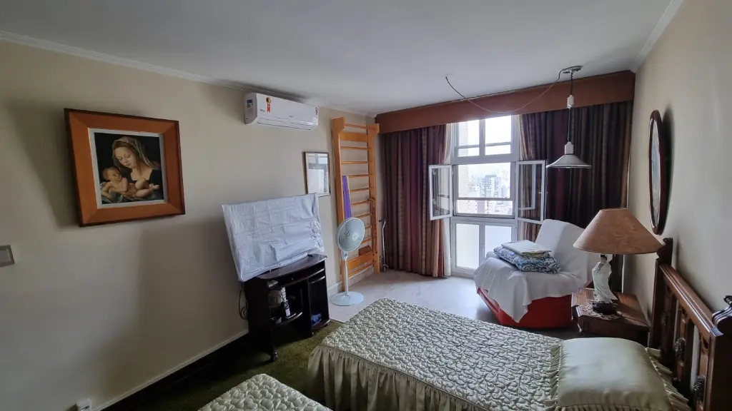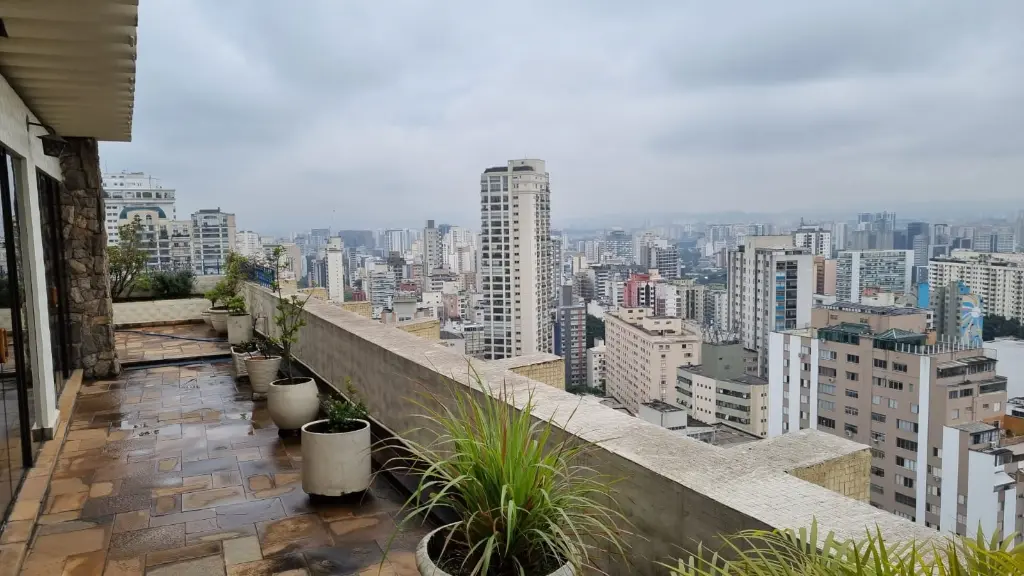 1526VAP Higienopolis - Sta. Cecilia. Vista espetacular para Serra Cantareira, apartamento com 168m2 de área útil, 3 dormitórios (1 suite com closet), 2 banheiros, sala, copa, cozinha, área serviço, WC, qto serviço, depósito, com direito a cobertura: 180m2, sala com lareira, escritório, amplo bar, sauna, hidro, canil, terraço, 4 garagens, ar condicionado. Água aquecimento central do prédio. Estudo apto 2/3 dormitórios na região. Almeida 99881-7160