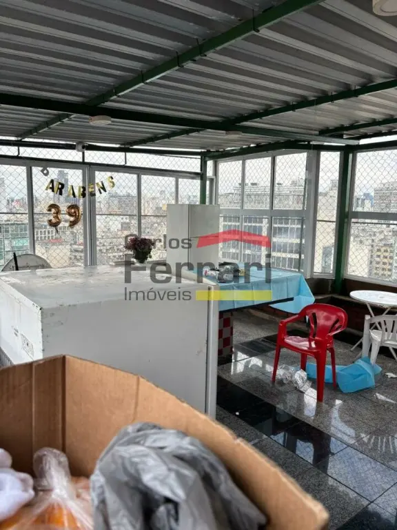 de área total e 42,3m², com sala e quarto em ambiente único, cozinha e pequena área de serviço, com terraço na cobertura do prédio com churrasqueira e vista panorâmica da cidade e da piscina do SESC, que é quase em frente, localizado dentro de uma grande galeria (Centro Dom José), próximo à galeria do Rock, com posto da polícia militar a 30 metros do edifício, nas proximidades temos o teatro municipal, Shopping Light, praça da República, bar Brahma e uma imensa variedade de estabelecimentos comerciais.
