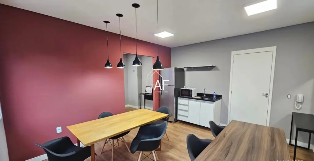Sala integrada à cozinha no estilo conceito aberto, proporcionando amplitude e praticidade