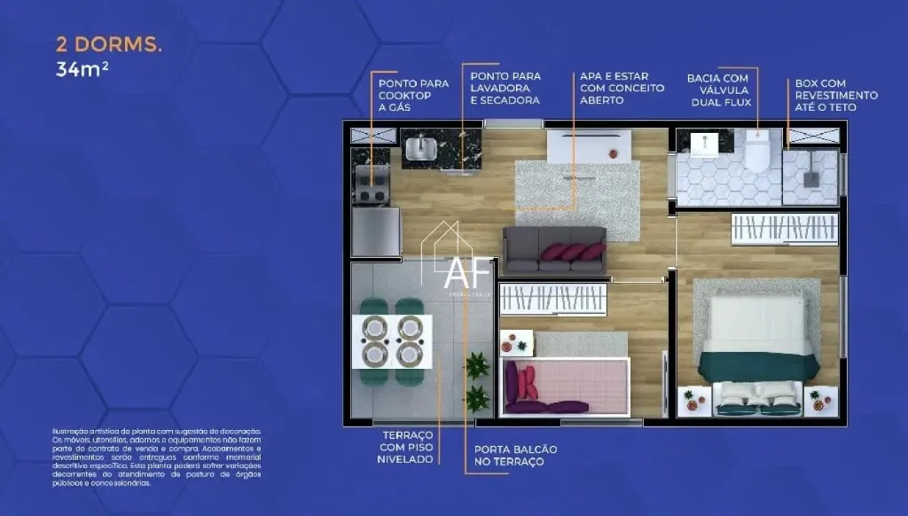2 dormitórios amplos, com excelente iluminação natural
