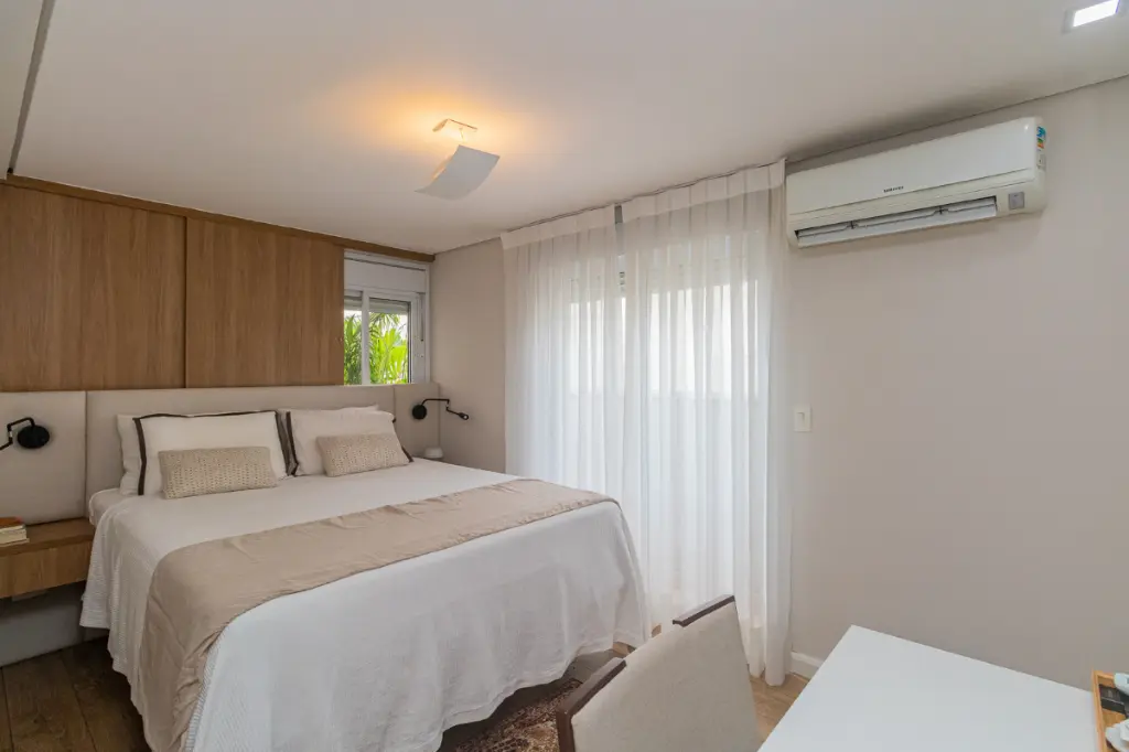 Todos os ambientes contam com ar-condicionado, proporcionando conforto térmico em todas as estações.
