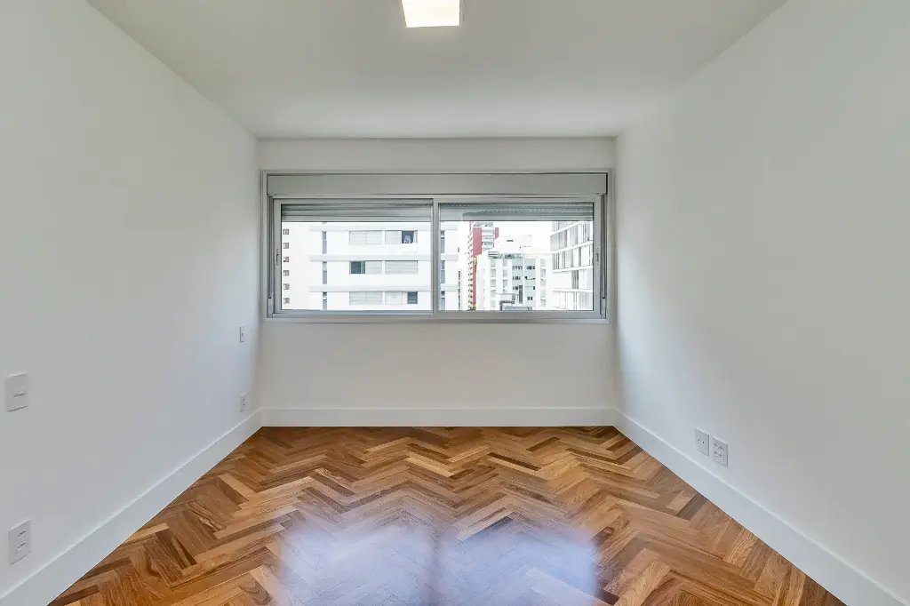 Essa é a nossa 2?ª reforma no Place L` Etoile. A planta quadrada desse apto facilitou a escolha de layout pela Arquiteta Cecília Hayashi (Ceci Yakabi Arquitetura e Reformas), que por acaso foi também a nossa parceira no outro apto que lá reformamos. Na área íntima conseguimos ter um banheiro para cada dormitório (duas suítes e um 3?º dormitório com banheiro social). No espaço social temos uma ampla sala com janelão piso teto e vista para o belíssimo edifício Solar do Conde, um dos ícones da arquitetura modernista em Higienópolis.