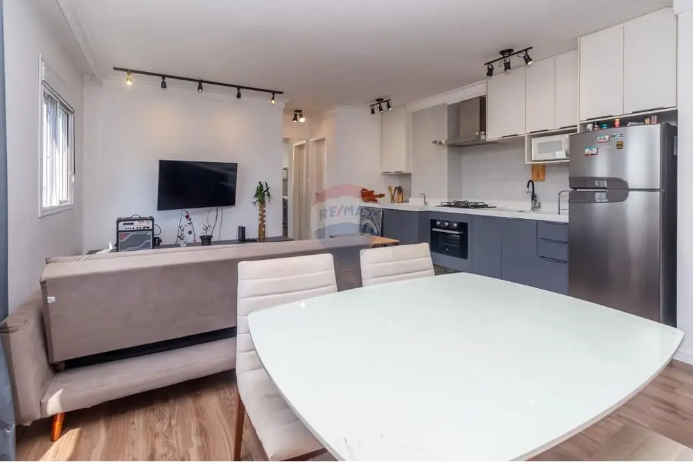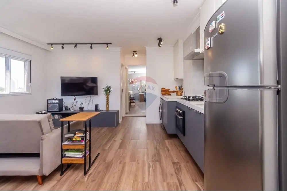 Apartamento moderno, revestimentos de primeira qualidade com móveis planejados sendo: 1 Dormitório, sala ampliada, cozinha moderna e banheiro. Localizado no condomínio New City Two, fica no 11º andar. Condomínio fechado, com vigilância 24 horas, excelente estrutura, possui duas torres, com 2 elevadores sociais e 1 de serviço, conta com lazer completo: salão de festas, 2 churrasqueiras, quadra de futebol, piscina adulto e infantil, lavanderia, bicicletário, mercadinho 24 horas, digno de um clube exclusivo. Fica dentro de um bairro com ruas planejadas e área ambiental preservada com muito verde. Quem morar aqui vai desfrutar do bem estar e tranquilidade que o local oferece pois são quase 50,000m2, com árvores, um privilégio que vai fazer parte do seu dia a dia.