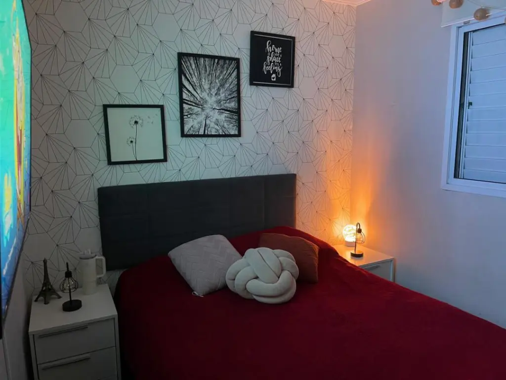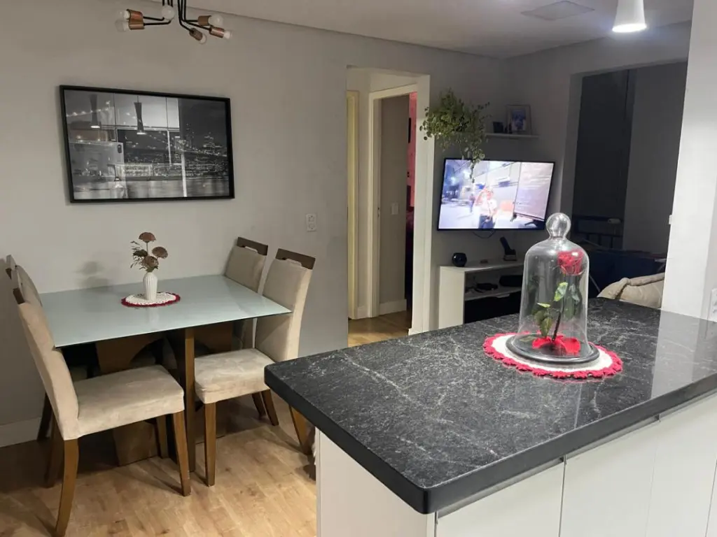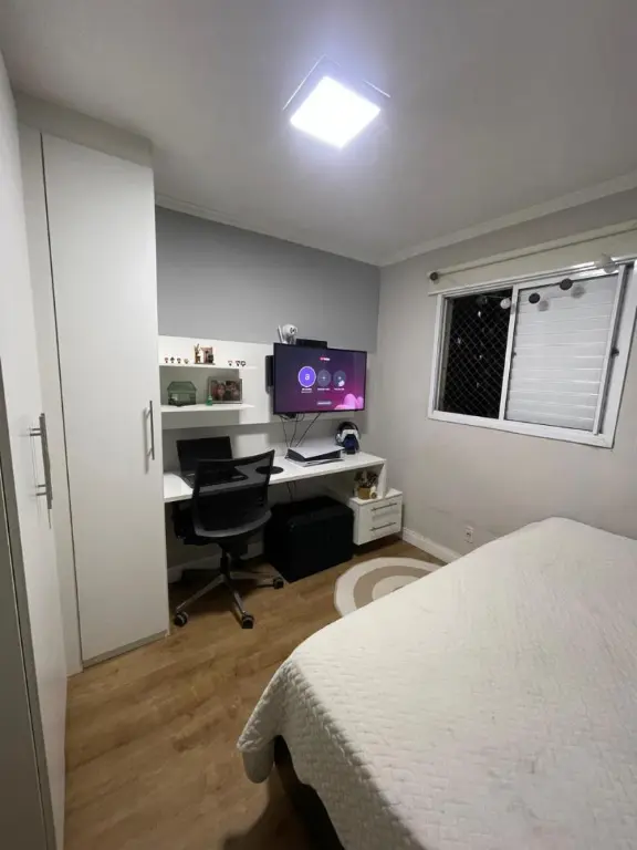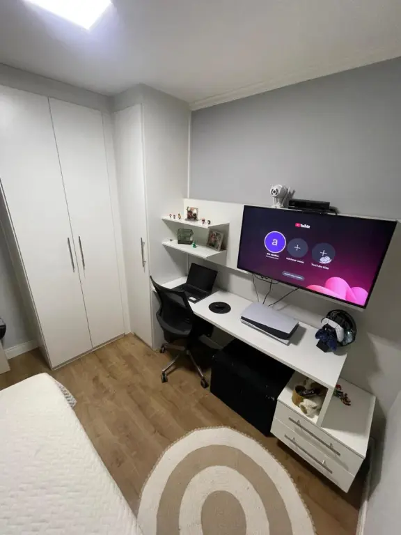 Este imóvel conta com móveis planejados nos quartos, cozinha, sala, área de serviço e banheiro, proporcionando organização e conforto. O segundo quarto possui uma prática mesa de estudos.